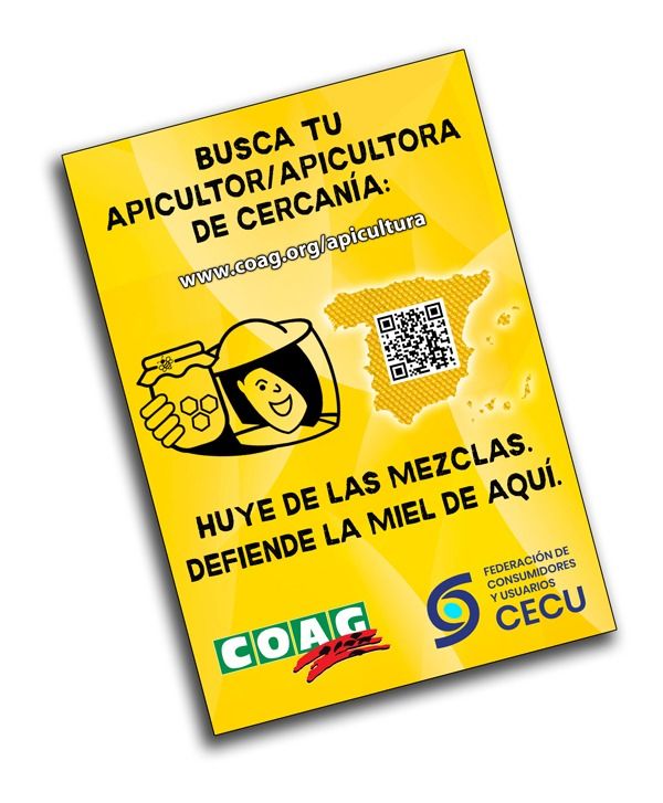 - De manera simultánea en 15 ciudades españolas, COAG y CECU organizan actos reivindicativos frente a las puertas de los supermercados bajo el lema, «Busca tu apicultor/a de cercanía. Huye de las mezclas. Miel de verdad y de proximidad»
